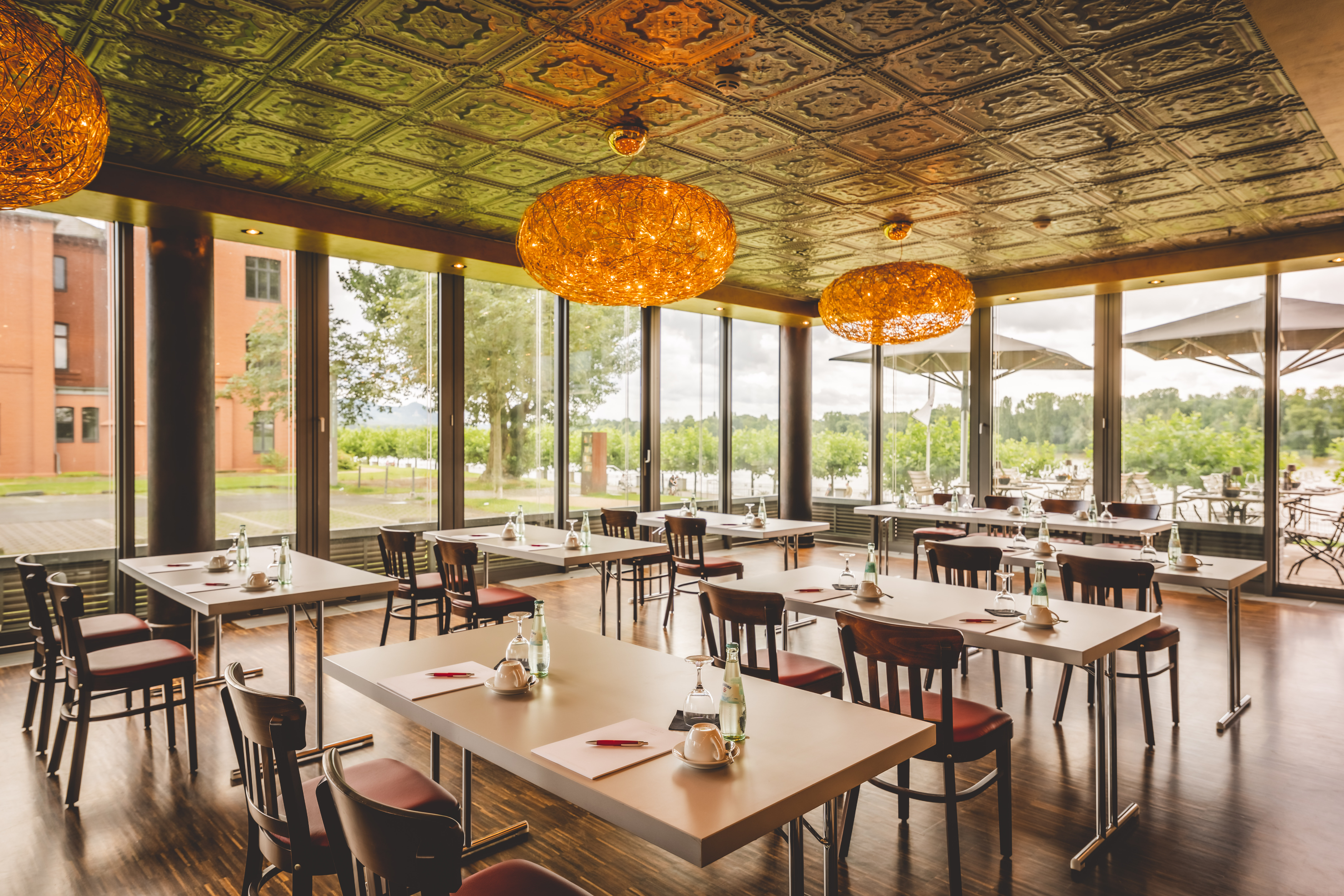 Ideal für Meetings, Tagungen oder auch Dinnerveranstaltungen. Der Hermann-Bleibtreu-Saal bietet nicht nur Komfort in allen Bereichen, sondern verfügt auch über eine eigene Terrasse mit Blick auf den Rhein. Ideal für Kaffeepausen oder Kreativmomente.